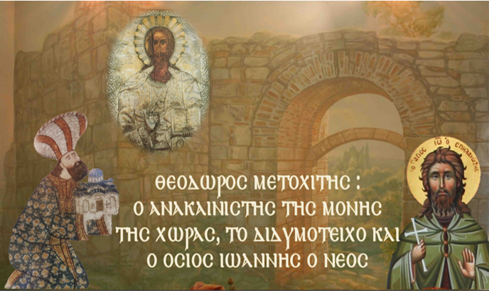 Παίρνοντας αφορμή από το πολύ ενδιαφέρον κείμενο του ομότιμου καθηγητή Βυζαντινής Αρχαιολογίας του Πανεπιστημίου της Κύπρου κ. Δημητρίου Τριανταφυλλόπουλου με τίτλο : “Μονή της Χώρας ακόμα ένα εσφαγμένον αρνίον” (το οποίο δημοσιεύσαμε στην ιστοσελίδα μας kastropolites.com), καθώς βεβαίως και από την προκλητική και βέβηλη απόφαση του Ερντογάν, να μετατρέψει τον ιστορικό αυτό ναό σε τζαμί, θυμήθηκα τη σχέση του ανακαινιστή της υπόψη Μονής, Θεοδώρου Μετοχίτη με το Διδυμότειχο και τον τοπικό μας άγιο Ιωάννη τον Νέο.