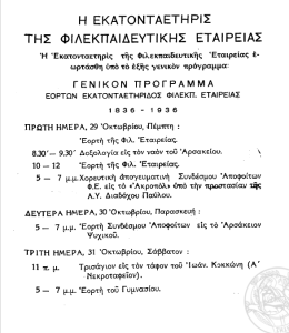 Το πρόγραμμα εορτασμού της εκατονταετηρίδα της Φ.Ε.