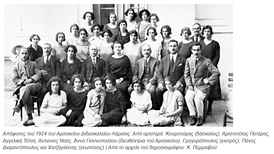 - Καθηγητές και απόφοιτες τού 1924 τού Αρσακείου Διδασκαλείου Λάρισας. history.arsakeio.gr